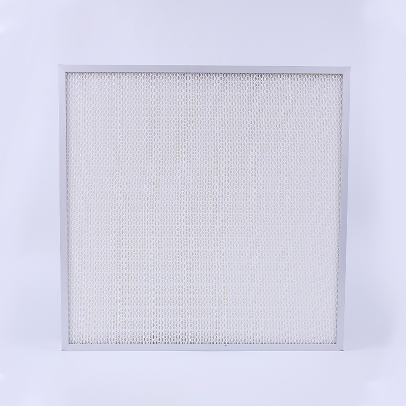 無(wú)隔板高效過(guò)濾器主要采用超細(xì)玻璃纖維濾紙作為濾料,熱溶膠作為濾芯的分隔物。具有體積小、重量輕、便于安裝、效率穩(wěn)定、風(fēng)速均勻的優(yōu)點(diǎn),目前無(wú)隔板高效過(guò)濾器是絕大多數(shù)潔凈廠房的選擇。
